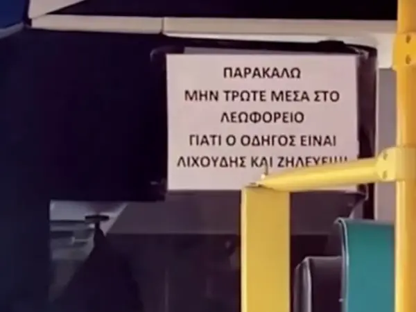 Viral έχει γίνει τις τελευταίες ημέρες ένας οδηγός λεωφορείου στη Θεσσαλονίκη, που εκτελεί το δρομολόγιο 64 του ΟΑΣΘ, ο οποίος «κόλλησε» μία ανακοίνωση – προτροπή στους επιβάτες που τρώνε μέσα στο όχημα.
